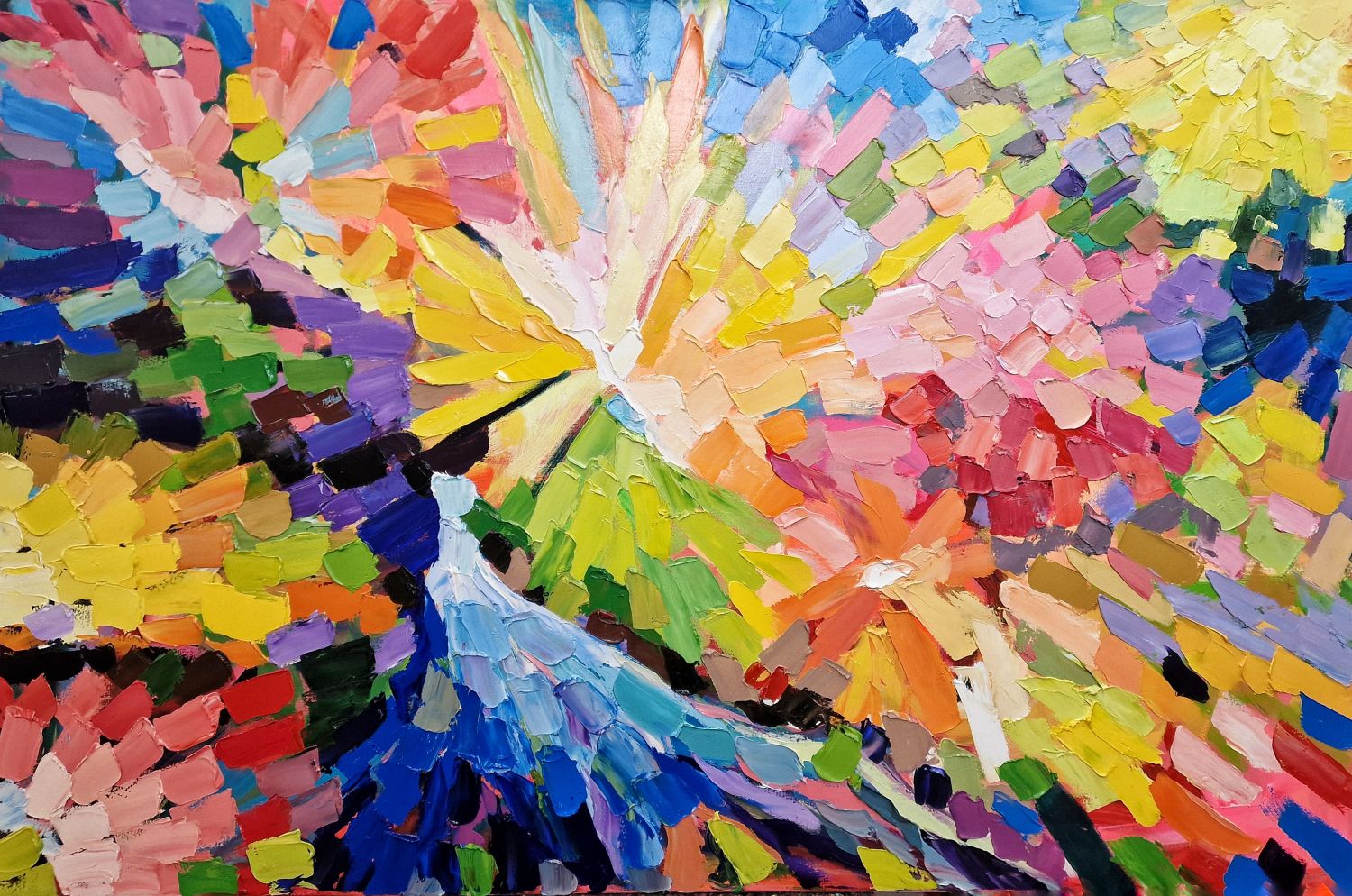"Informal Impressionism" is the formula that he chose to summarize this phase of his work: "impressionism" because the inspiration of the work is given by a concrete and sensitive image; "informal" because the energies and sensations contained in this image come as freed from the limits of the form, to become concrete in pictorial matter that expands freely.